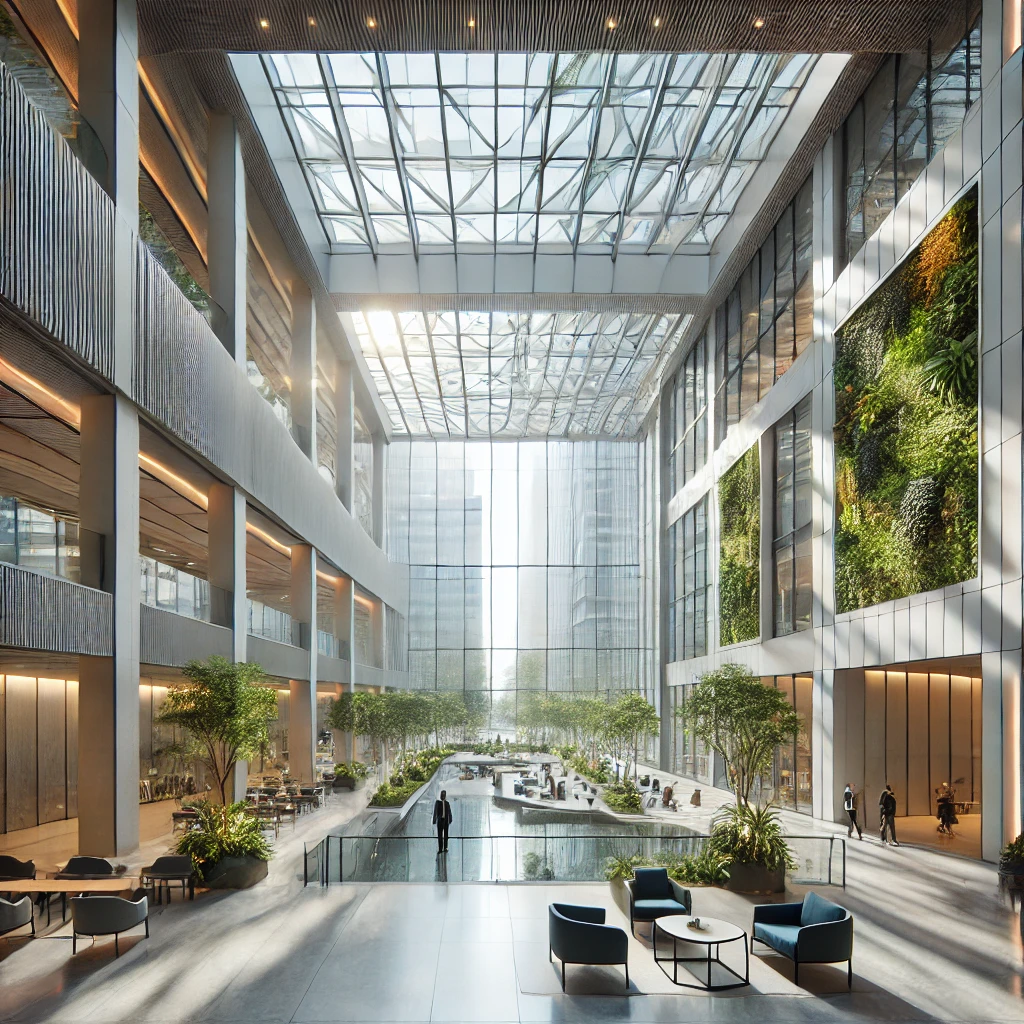 - 아트리움은 건물 중심부에 자연 채광을 도입해 전반적인 밝기를 높이고 에너지 효율을 극대화할 수 있습니다.